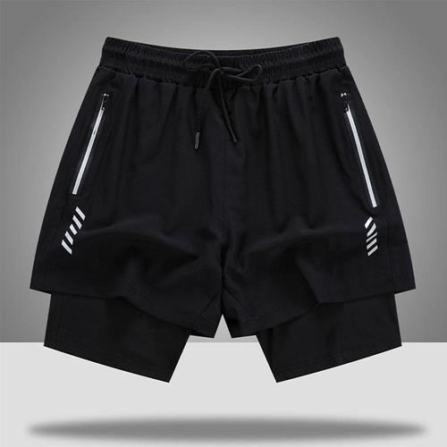 남성용 2 in 1 이중 레이어 스포츠 반바지 트레이닝복 짐 피트니스 조깅 운동복 하의