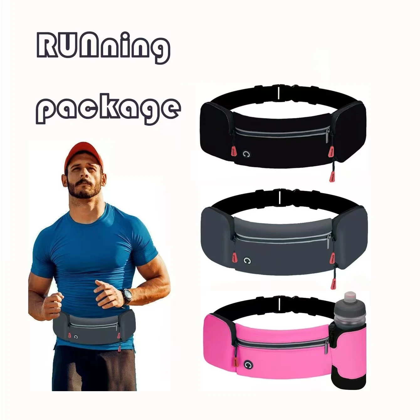 러닝 웨이스트 백 마라톤 조깅 백 물병 힙 웨이스트 팩 방수 야외 스포츠 조깅 사이클링 폰 웨이스트 백