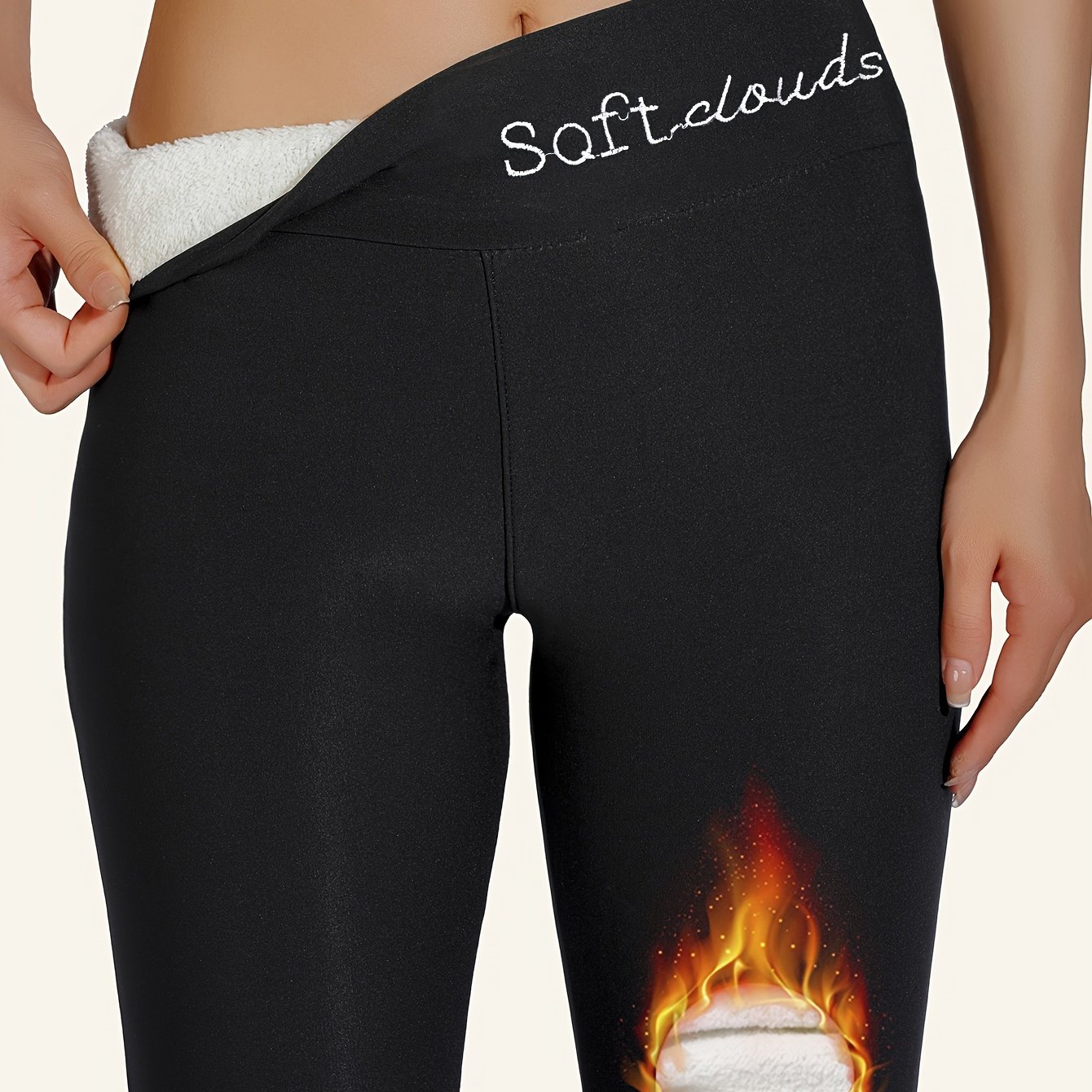 TEMU 여성용 하이웨이스트 보온 레깅스 - 플리스 안감의 두꺼운 겨울 바지, 신축성 있는 요가 & 헬스장 바지, 추운 날씨용, 미끄럼 방지, 세탁기 사용 가능 - 가을/겨울용 우아한 운동 & 캐주얼 바지, 겨울 레깅스, 가을 겨울 의류