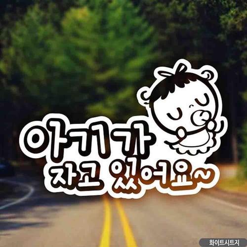 [HYIJL5YF_4B]자동차스티커 아기가자고있어요 화이트시트지