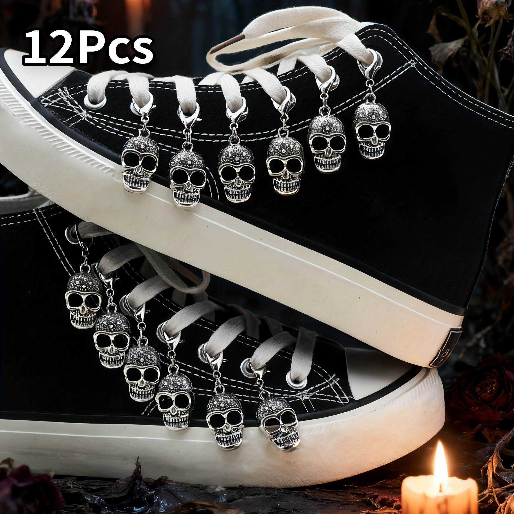TEMU 12개 스컬 신발 장식 (랍스터 클립 포함) – 고딕 펑크 스타일 스니커즈, 캐주얼 & 부츠용 매달기 액세서리