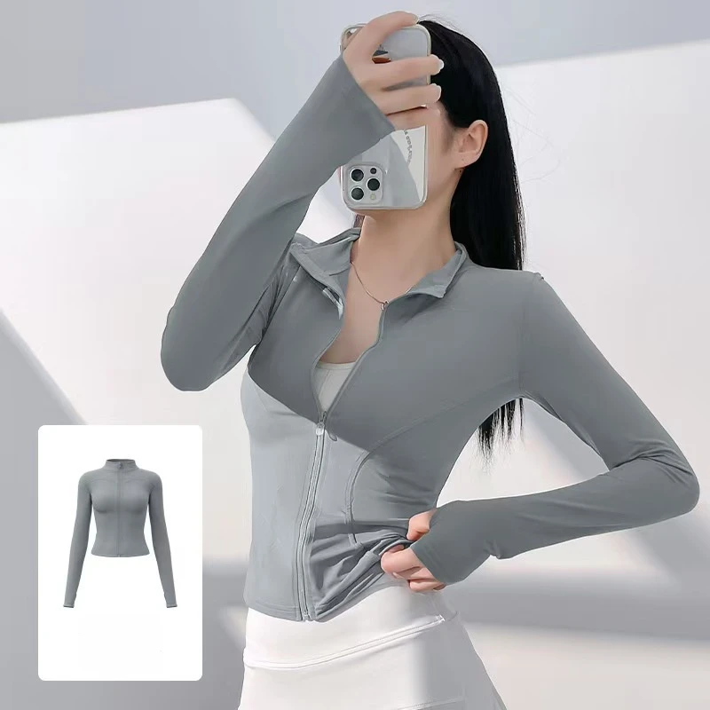 스탠드 칼라 요가 얼음 실크 태양 보호 의류 여름 여성 슬림 맞는 다목적 슬리밍 스포츠 얇은 재킷
