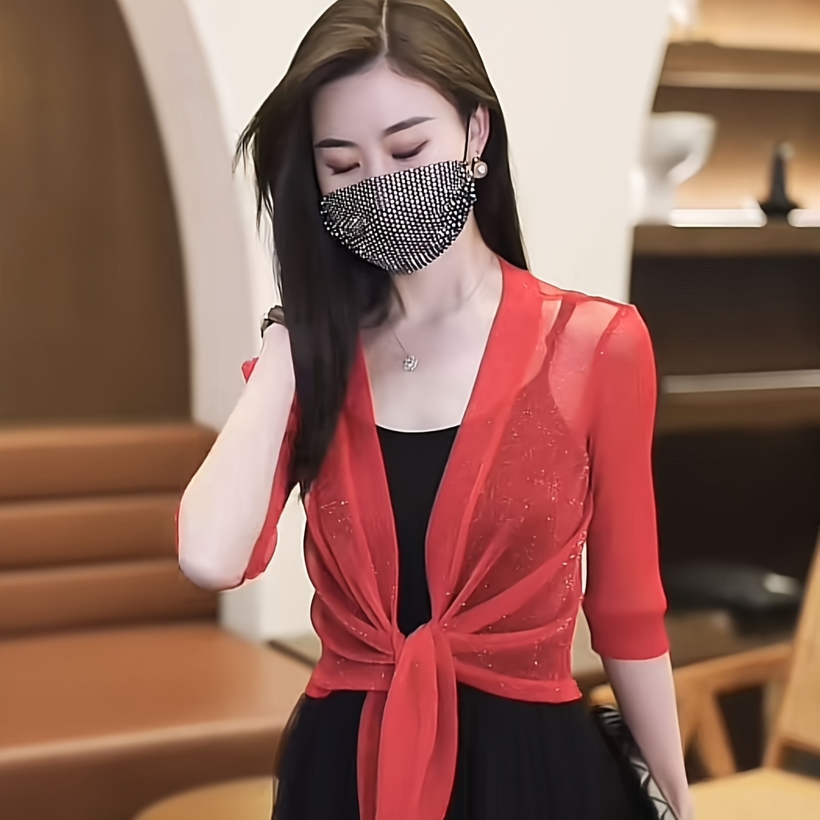 TEMU 1개 봄 여름 가을 패션 카디건 드레스 - 배트윙 소매 & 컷아웃 오버레이 숄 코트 여성용