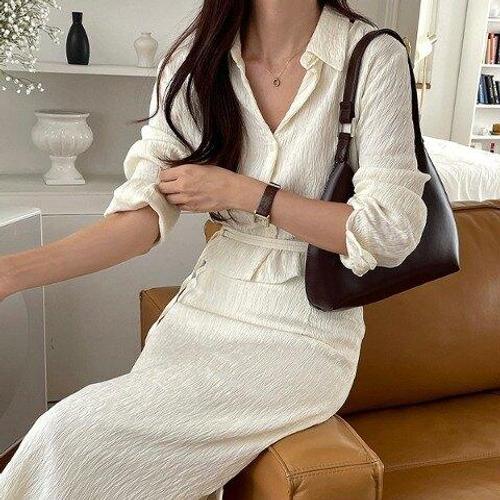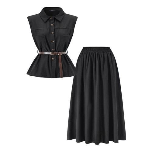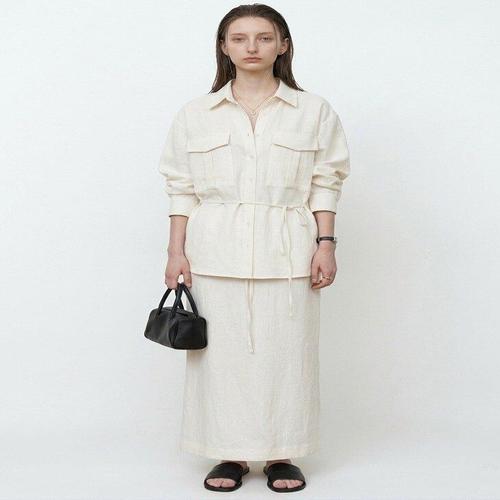 [GGPX]민소매 카라 벨티드 셔츠 롱 스커트 셋업 (GQBOW012D)