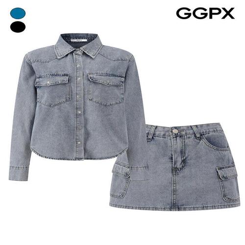 [GGPX]캐주얼 데님 셔츠 앤 큐롯 스커트 셋업 (GQ3ST009F)