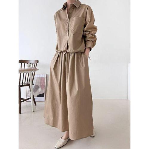 [샵앤]여성 카라 스트링 셔츠 롱스커트 세트 ARA-WSET-4952-진베이지