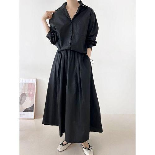 [샵앤]여성 카라 스트링 셔츠 롱스커트 세트 ARA-WSET-4952-블랙