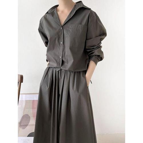 [샵앤]여성 카라 스트링 셔츠 롱스커트 세트 ARA-WSET-4952-차콜
