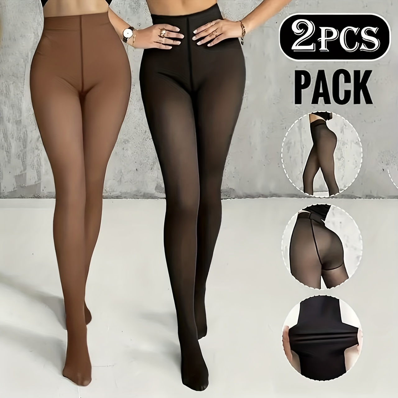 TEMU 2개 여성용 시스루 보온 타이츠 - 누드 & 연갈색 불투명 레깅스, 고강도 겨울용 보온, 복부 컨트롤 슬림핏 팬티스타킹, 파티용 - 손세탁 가능, 하루 종일 착용 (건조기 금지)