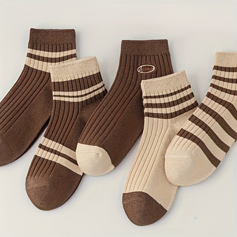 TEMU 여성용 갈색 & 양말 5팩 - 부드러운 캐주얼 튜닉 길이 스타킹, 손세탁 가능, 캐주얼 복장, 사무실 및 반정장 복장에 적합