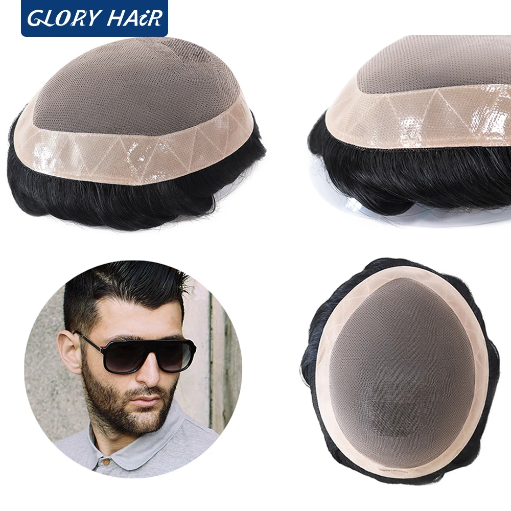 남성용 Toupee 인도인 인모 가발, 얇은 피부 인모 가발, 인비저블 천연 헤어 라인, 인도 헤어 시스템 유닛