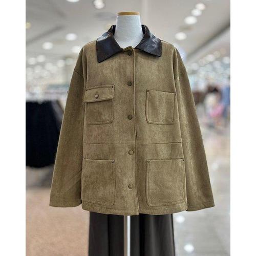 [데일리스트]가죽 비죠 스탠카라 코트_MDBEA4W9431