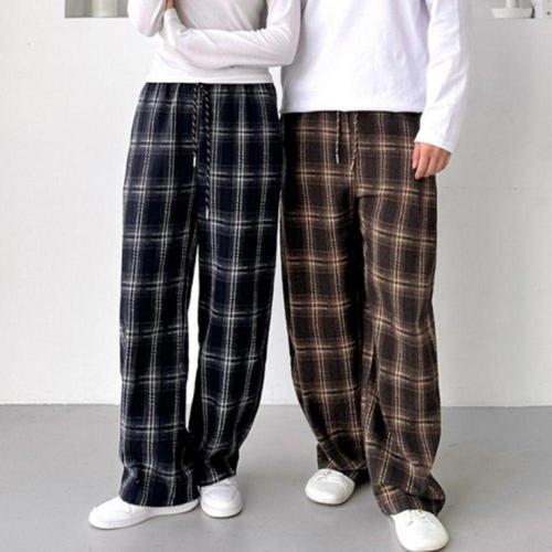 남녀공용 체크면 와이드팬츠 겨울 빈티지 팬츠 WFMAMTZ