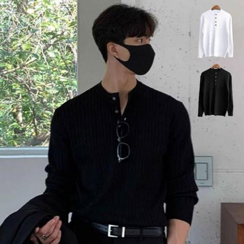 [에이치플러스몰]남자 포단 골지 니트티 남성티숙 클래식 남자 캐주얼숙 데일리 남성 슬림핏 솔리드숙 남..