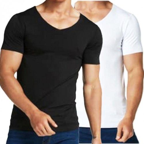 남성 슬림 브이넥 기능성 무지 반팔 운동티셔츠 WFKNQLD