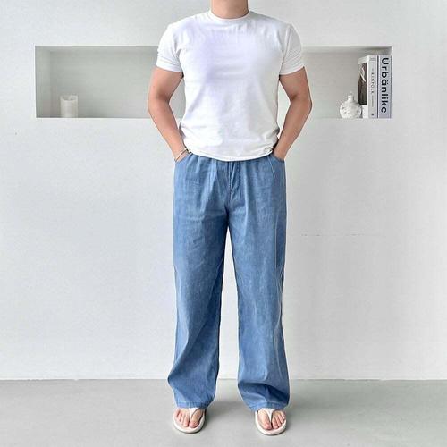 [오너클랜]인기상품 남성 여름 냉감 와이드팬츠 1P 찰랑거리는 밴딩 바지 [WC39466_250919]
