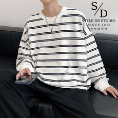 스타일닥터 남성용 스트라이프 루즈핏 맨투맨 긴팔 르네스 단가라 캐주얼 오버핏 풀오버 긴팔티