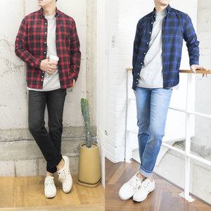 [갤러리아] 예작 남자 셔츠 기모 긴팔 겨울 체크 남방 YJEWBR128GY