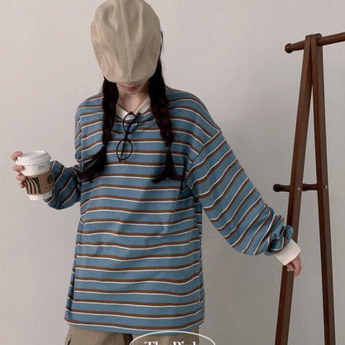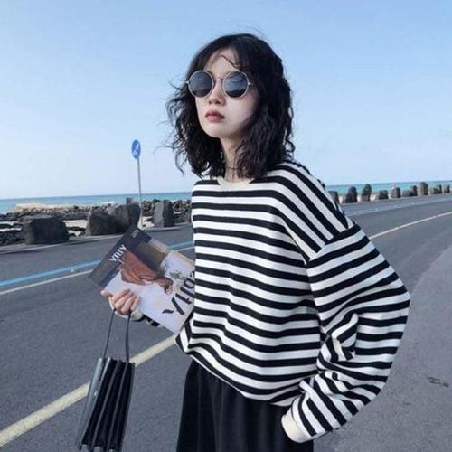 [블랙퀸]스트라이프 배색 맨투맨티 blk003986