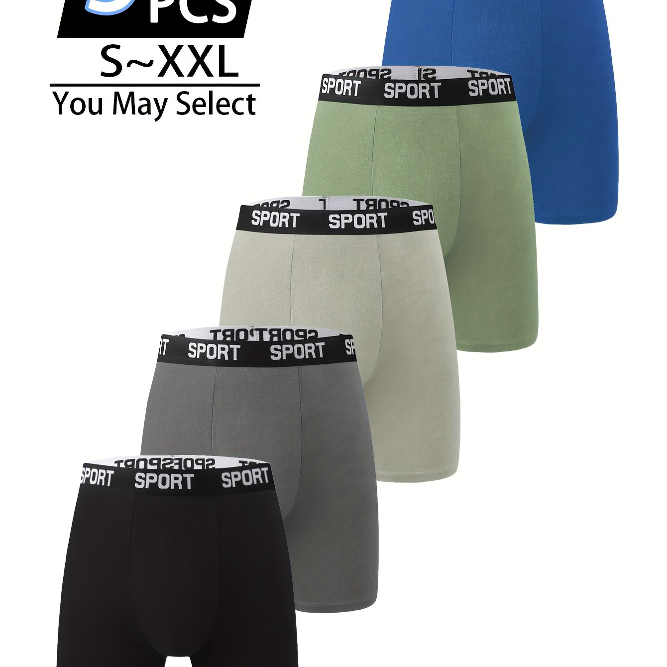 TEMU 5개 남성용 롱 스타일 속옷 세트, 신축성 있는 허리 밴드 피부 친화적인 드로즈 팬티 세트, 데일리 및 수면용, 패셔너블한 롱 레그 남성용 속옷, 스포츠 및 레저용