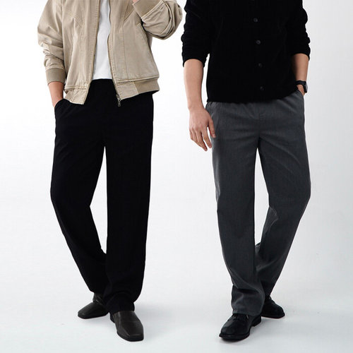 1+1 남자 면바지 스판 밴딩 일자핏 빅사이즈 슬랙스 바지 (6081-2)
