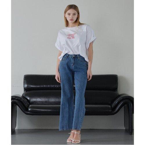 [에이비에프지]백 레터링 포인트 세미 부츠컷 데님 팬츠 APZ3NE33I