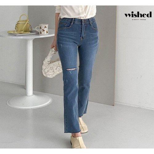 [위시드]데미지 컷팅 세미 부츠컷 워싱 데님 팬츠 (WIACPT018)