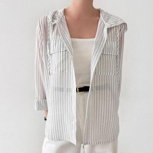 [H스타일](SH)26-3린넨스트라이프남방 봄 여름 린넨