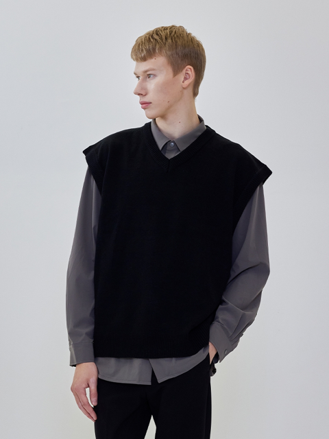 [애드호크] 남성 오버핏 니트 베스트 (블랙)