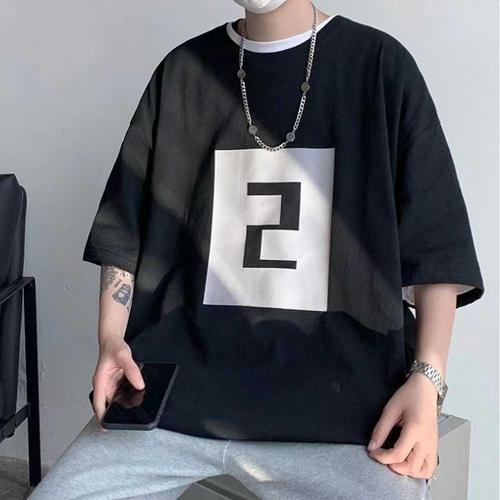 루즈 힙합 패션 남자 오버핏 7부 티셔츠 반팔 여름옷 WA402BD