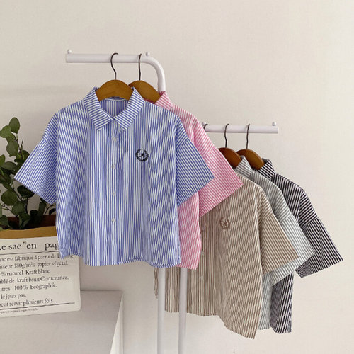 [엄지척]하트자수 스트라이프 반팔 셔츠 JSC-2024050801_19651634_667501