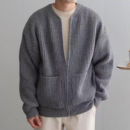 남성 봄 가을 니트집업 투웨이 지퍼 노카라 가디건 아우터 WFKPZ0U
