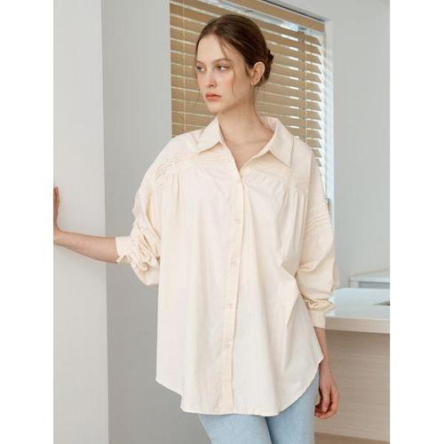 [미니멈 에브리데이]레이어드 핀턱 오버핏 벌룬 롱 셔츠 (EC1BA008D)