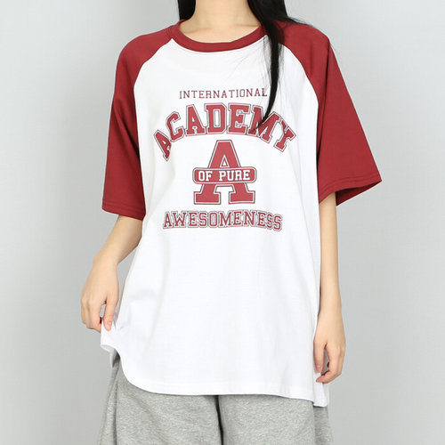 파라노말샵 / (박스티) 아카데미 나그랑 배색 라운드 오버핏 반팔