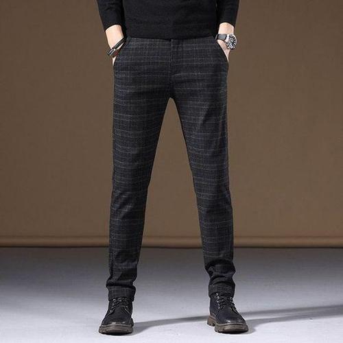 [에이치플러스몰]남자 캐주얼 체크팬츠 일자 슬림핏 밴딩슬랙스