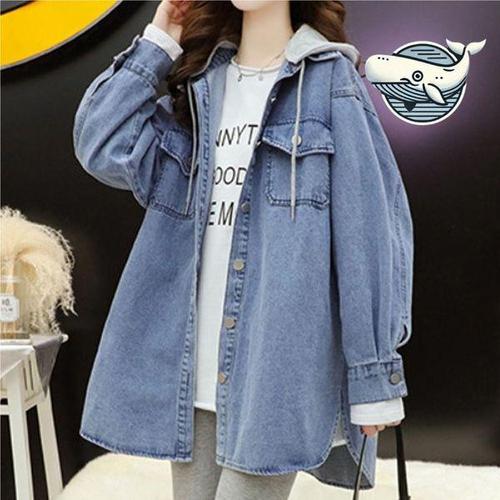[에이치플러스몰]봄가을 후드 탈부착 데님 점퍼 캐주얼 아우터