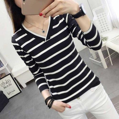 [오너클랜]인기상품 2컬러 슬림핏 스트라이프 베이직 브이넥 긴팔티셔츠 [WFKVD8P_260414]