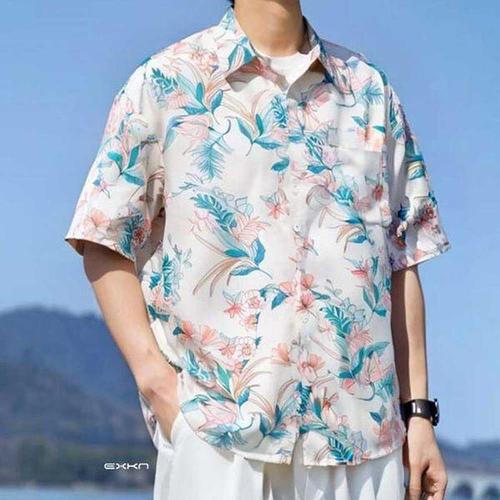 [에이치플러스몰]플라워패턴 반팔 셔츠 여름 휴가 비치웨어 하와이안