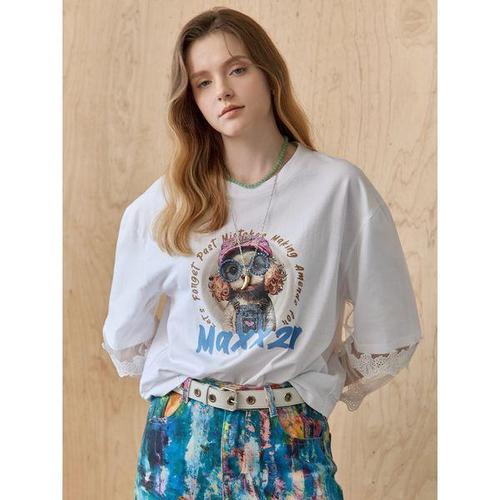 [마쟈]선글라스 퍼피 프린트 레이스 소매 티셔츠