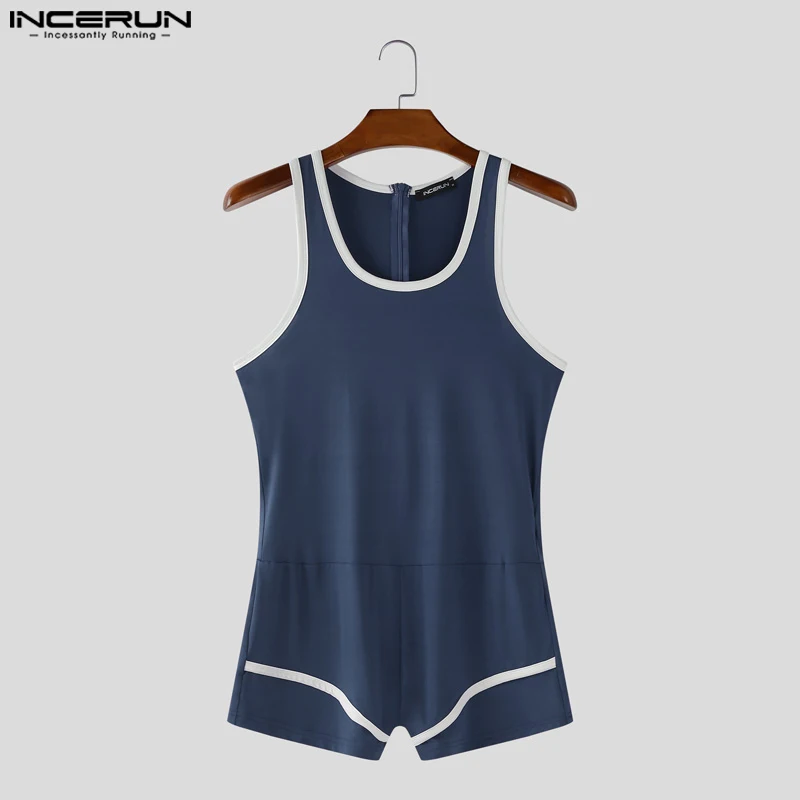 INCERUN 남성 바디 슈트 패치 워크 오 넥 민소매 여름 남성 Rompers Playsuits streetwear 운동 섹시한 2025 아늑한 바디 슈트 남성