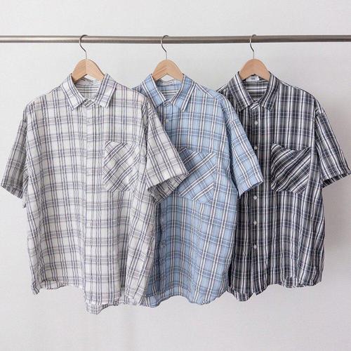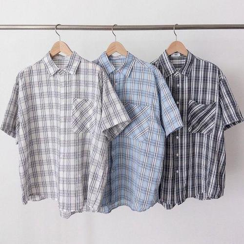 [보슈아][sado]남성 시어서커 여름 체크 반팔 남방 셔츠 스판 오버핏 SS1023M