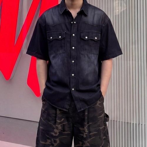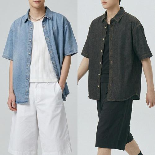 [화이트빌딩]남자 반팔셔츠 여름 오버핏 데님 캐주얼 와이셔츠