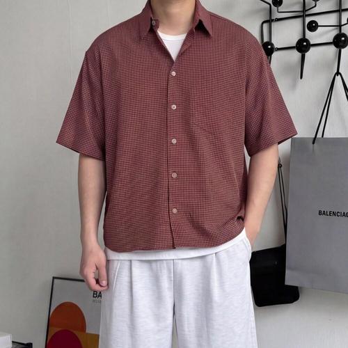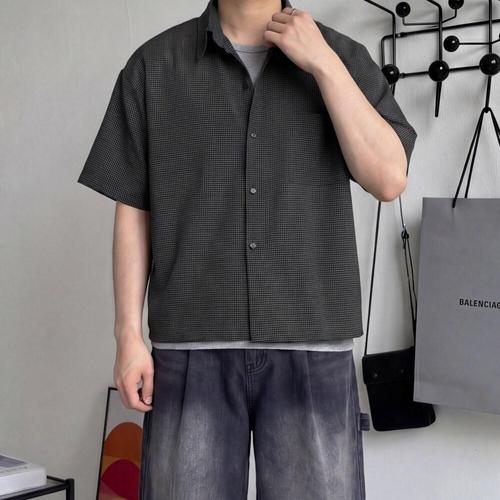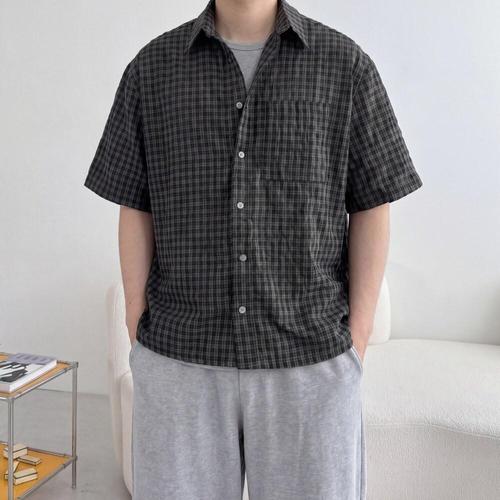 [모노폴로지]크롭 남자여름체크셔츠 오버핏 엠보 남방