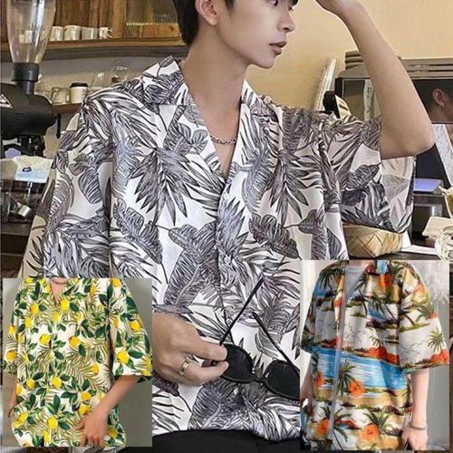 남성 오버핏 반팔 셔츠 여름 하와이안 셔츠 WFMAO0R