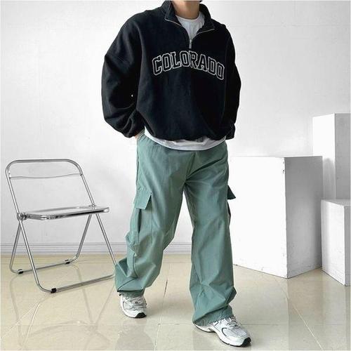 [에이치플러스몰]남자 스트릿 카고바지 와이드핏 일자 스트링 조거팬츠 6색