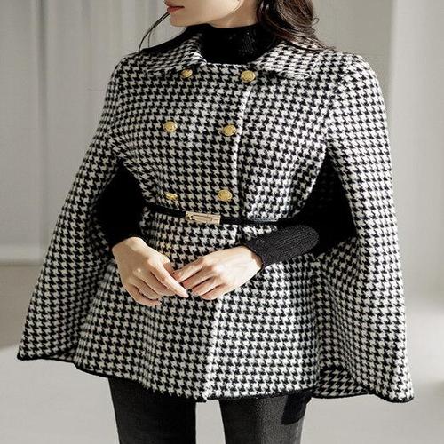 [스타일온미][스타일온미] 시크실루엣 하운드 체크 벨트SET 더블 케이프 코트