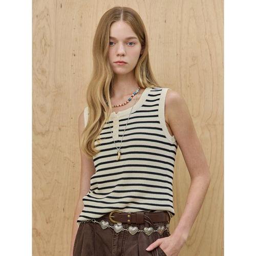 [마쟈]스트라이프 헨리넥 슬리브리스 니트