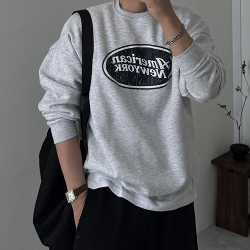 제로스샵 / 남친룩/캐주얼 볼드 아메리칸 로고 기모 오버핏 맨투맨