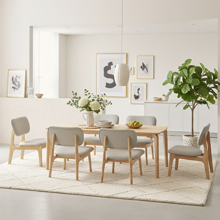 보루네오 낮은6인 원목식탁 책상테이블+의자6개 TR6045R [착불]