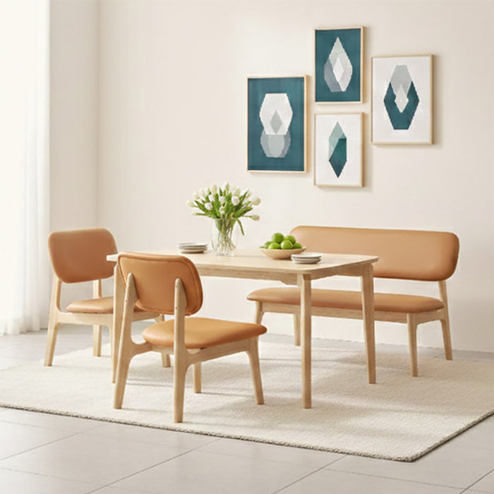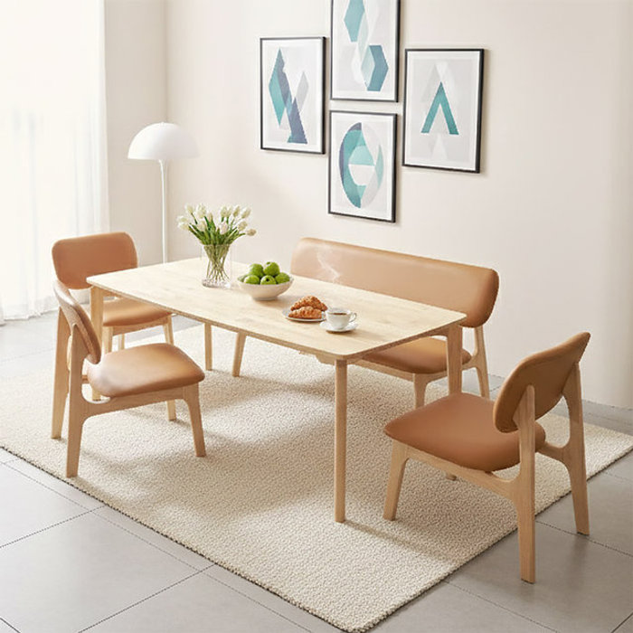 낮은4인 원목식탁 책상테이블+의자2+벤치1 TR6044R (착불)